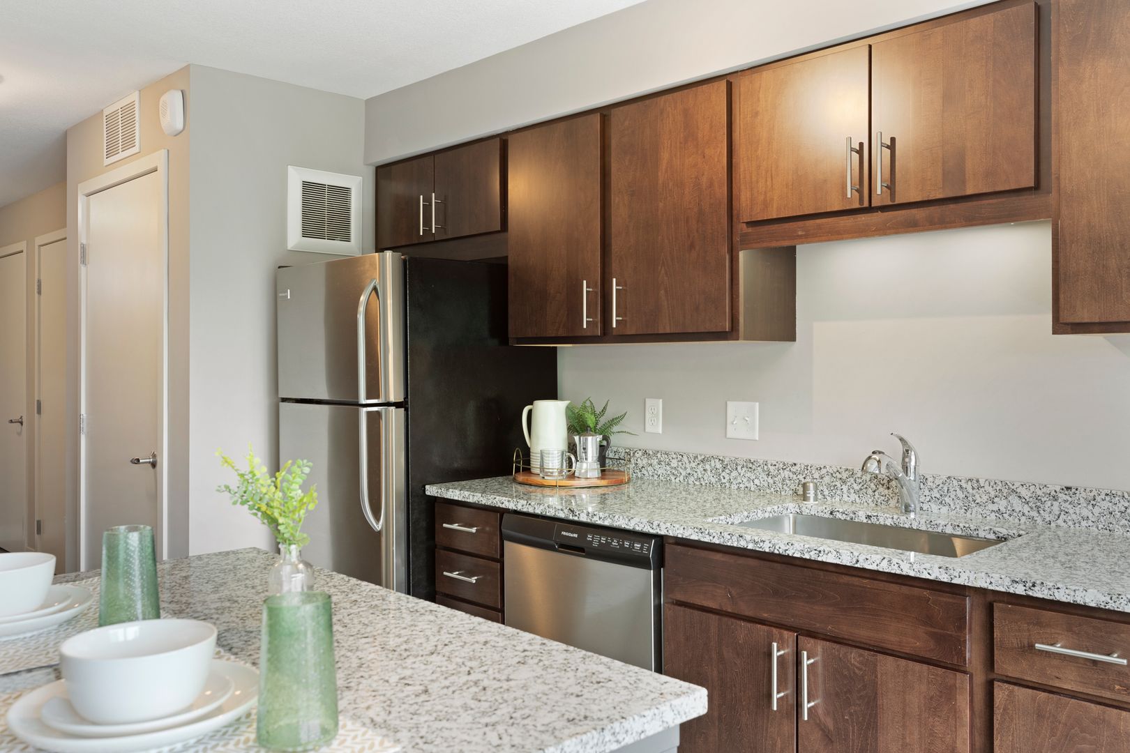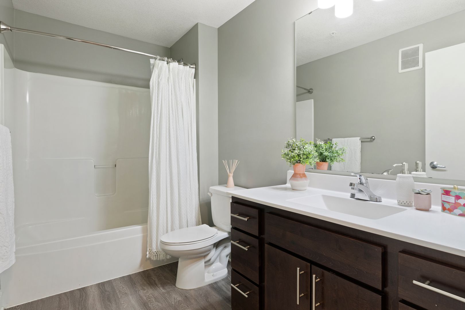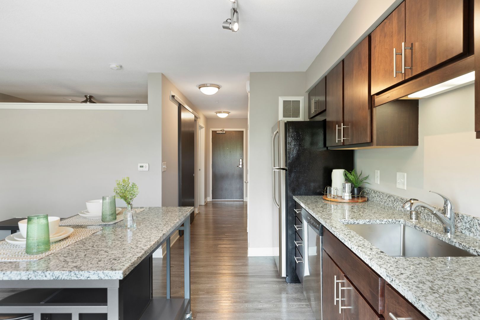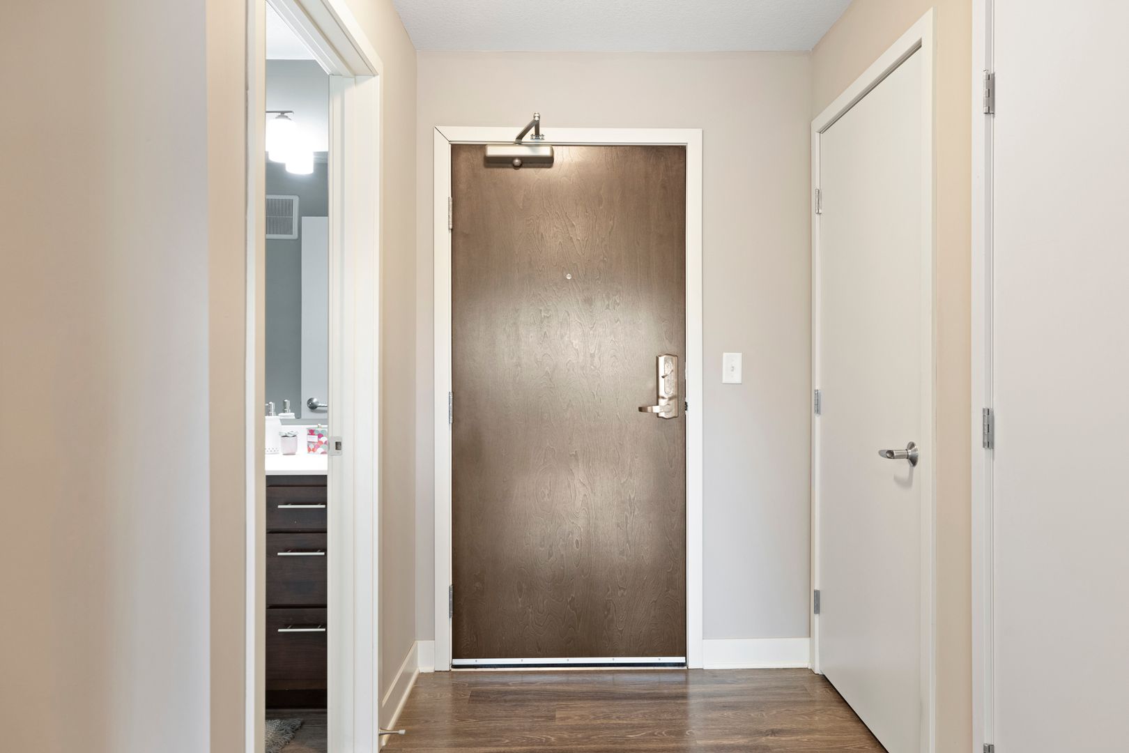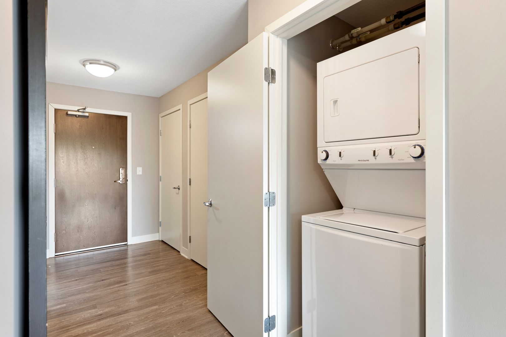 Our one bedroom and one bathroom units offer the best mix of spacious living and modern convenience, with in-unit laundry, direct fiber internet available and upscale appliances. They also feature solid flooring, spacious closets, expansive windows, modern bathrooms, convenient roller shades, and more, providing incomparable comfort.